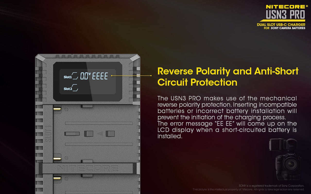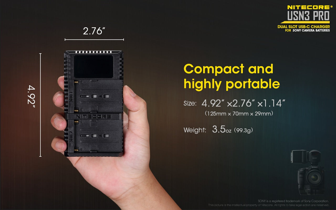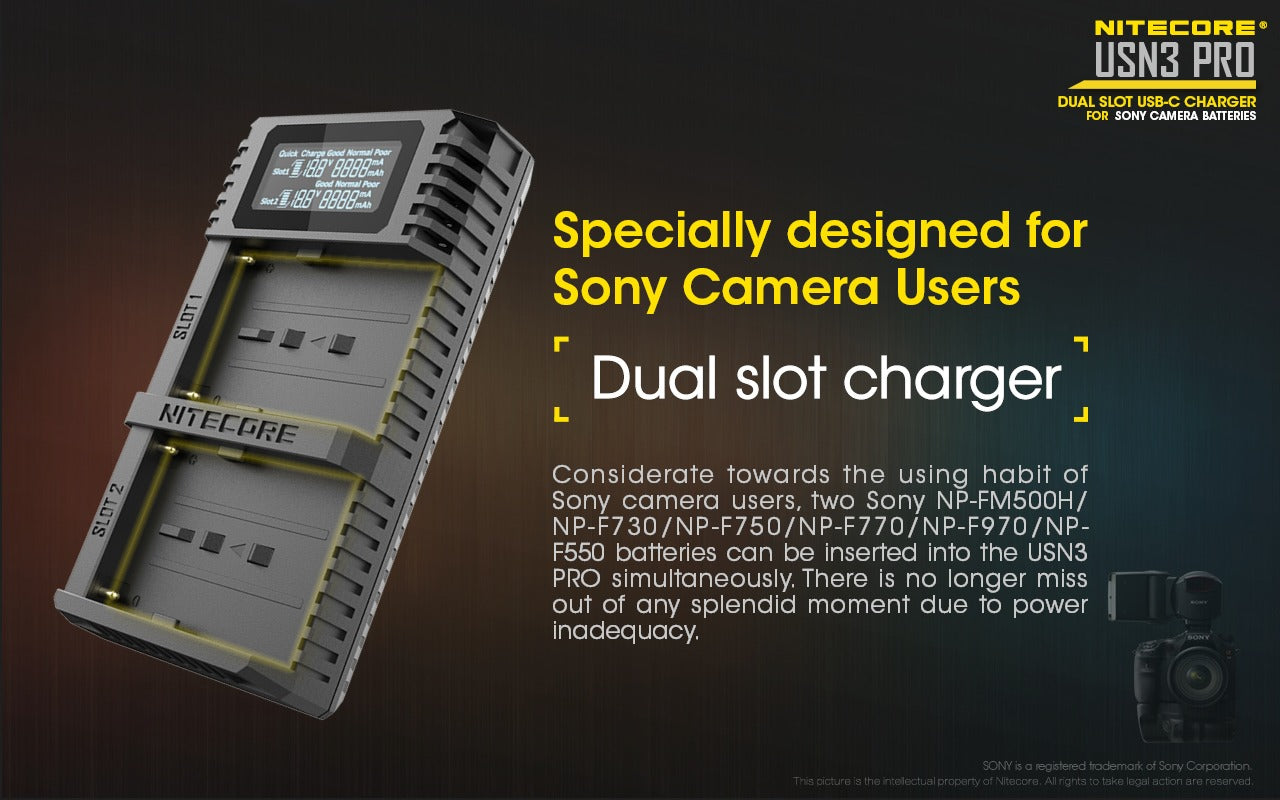 USN3 PRO (Sony L-Series) Dual-Slot Battery Charger - Nitecore Singapore